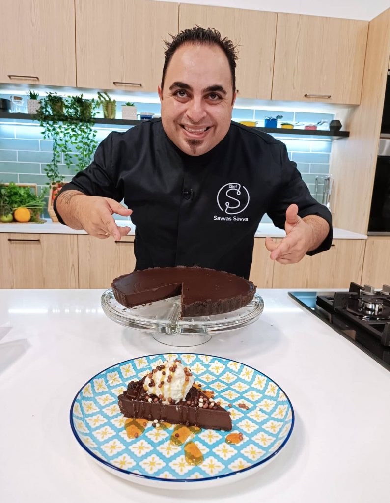 Κόβουμε με ένα καθαρό μαχαίρι (τοποθετούμε το μαχαίρι σε ζεστό νερό) για να είναι ομοιόμορφες οι μερίδες μας.